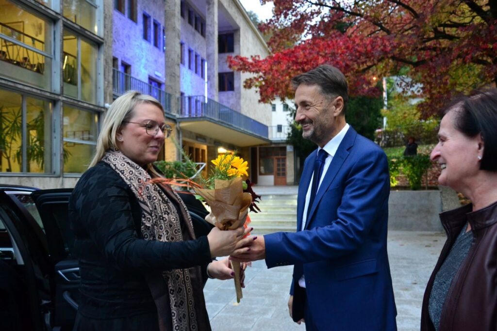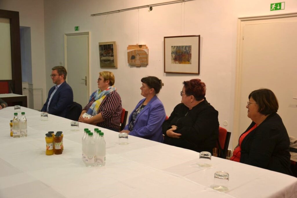 Zagorski župan Matjaž Švagan ter podžupana Mitja Adamlje in Janez Vovk so pred podelitvi tradicionalno sprejeli vse štiri nominiranke in predsednico Zveze Ireno Ule.