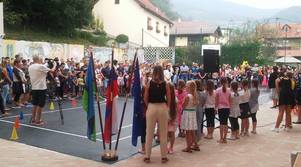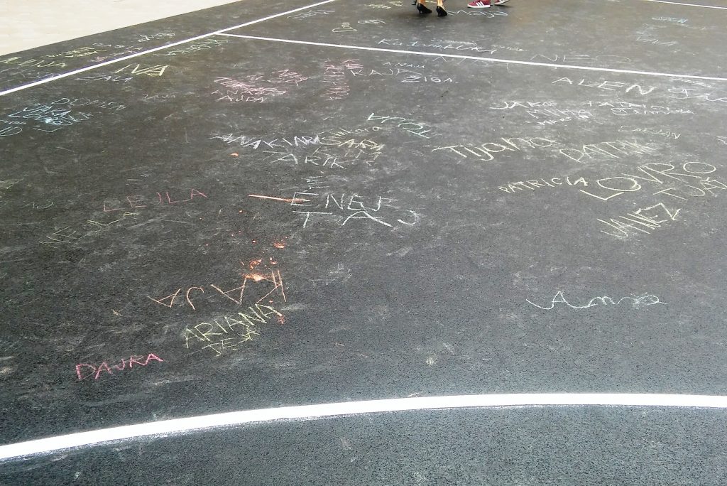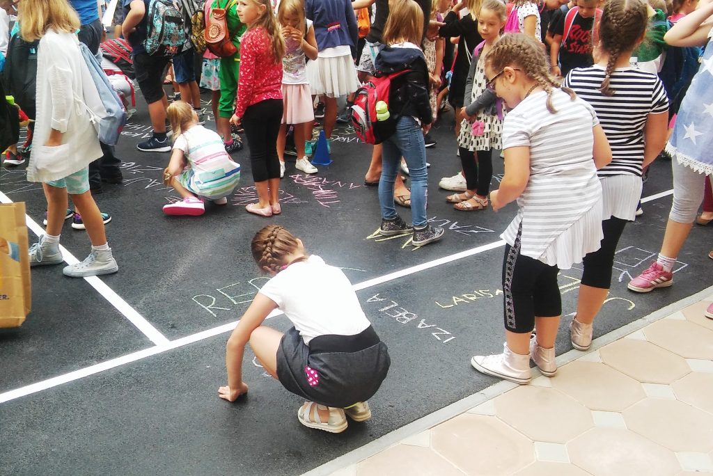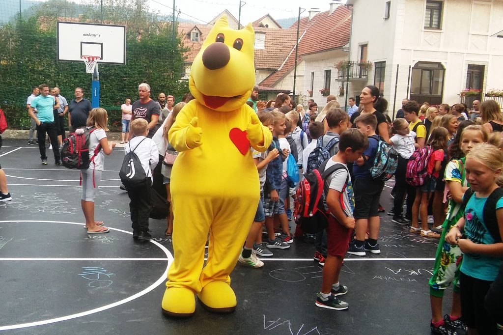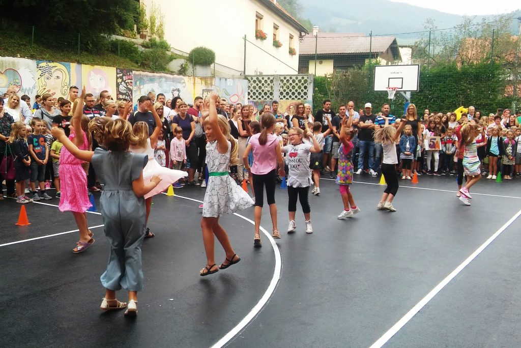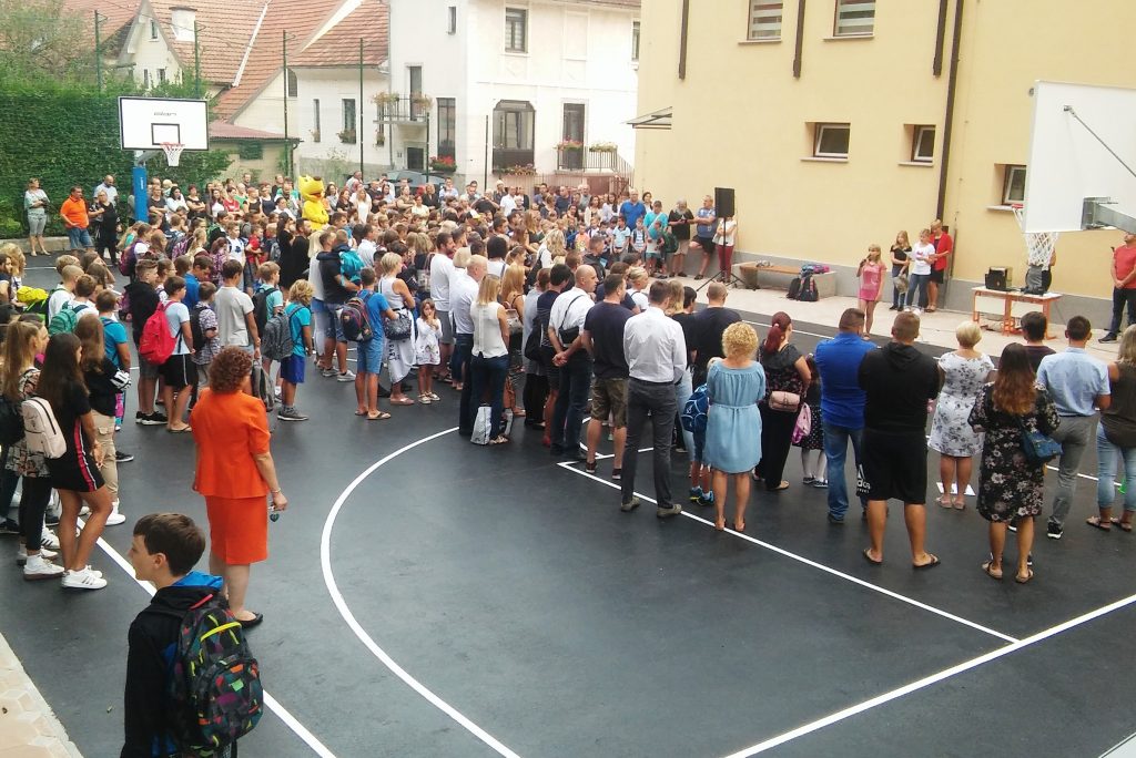 Sicer pa so tako že stari, kot letošnji prvi šolarji vstop v novo šolsko leto ob uradni otvoritvi prenovljenega dvorišča obeležili tudi s praznovanjem nove pridobitve v obliki krajše proslave s kulturnim programom ter govorom ravnateljice, županje ter predstavnika Fundacije za financiranje športnih organizacij in svojim podpisovanjem na tla.