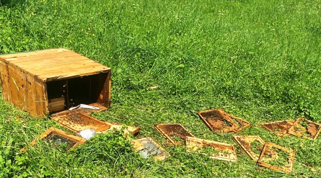 Dobovec je v noči s srede na včeraj obiskal medved. Čeprav incidenta ali poškodbe k sreče ni bilo nobene, je krajanom nagnal v kosti kar nekaj strahu. »Bratov pes je okoli 22. ure vztrajno lajal. Zjutraj pa smo opazili, da sta v čebelnjaku izruvana dva panja. Medved ju je odnesel kakšnih 20 metrov stran na travnik, pojedel in se vrnil v gozd,« pove krajan MR. Dogodek se je pripetil v sosedovem čebelnjaku, v neposredni bližini njegove hiše, od katere je oddaljen kakšnih 25 metrov. Kot pove, mu ni znano, da bi medveda kdo podil, ampak je odšel sam.