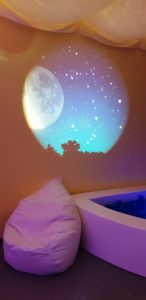 Tovrstne sobe imajo oblazinjene stene in tla, med opremo pa je najti vodno posteljo, vodni in glasbeni stolp, disko kroglo, aromaterapijo in podobno. Ne glede na to, kdo so uporabniki, je poglavitni namen takega prostora prijetno in sproščeno počutje, ki je stimulirano na neprisiljeni način. Pozitivni učinki tega so tako izboljševanje razpoloženja, pozornost, koncentracija, spomin, zmanjševanje vedenjskih težav, izboljševanje kvalitete življenja in podobno.