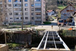 Berite naprej... V sklopu sanacije plazu nad JP Prečna pot–Cesta zmage so se začela dela za postavitev začasne brvi za dostop do