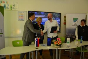 Berite naprej... V Osnovni šoli Toneta Okrogarja v Zagorju ob Savi so podpisali pogodbo o začetku obnovitvenih del stavbe Partizana, v kateri