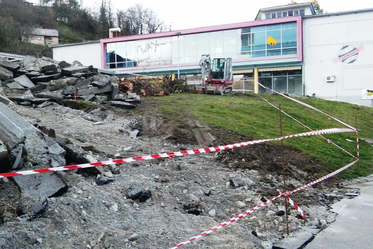 Prostor pred in pod pošto ter DM bo do nadaljnjega gradbišče.