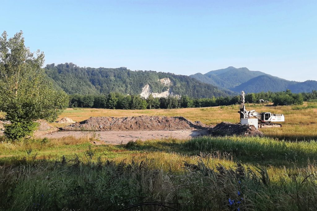 Za namen raziskav so potekala vrtanja do 35 metrov globoko, sedaj pa so, kot je sklepati po videnem na lokaciji, dela na terenu končana. Vrtalni stroj, ki je še ostal, stoji, dela pa trenutno bager, ki koplje nekaj metrov globoke luknje.