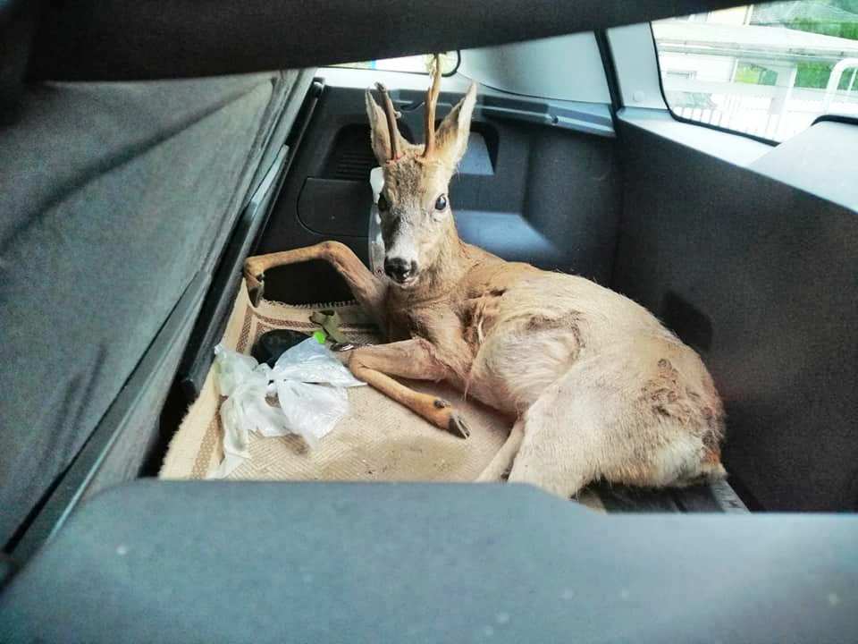 Danes zjutraj je prejel klic kolegice, da je v križišču pri Lidlu v Trbovljah poškodovan srnjak. Žival je očitno utrpela hude poškodbe ob trku z avtomobilom, saj je njen zadnji del telesa odpovedal in je trpela močne bolečine. Poleg tega je ležala tudi na pločniku in je zaradi njenega stanja ter šoka bila tudi velika nevarnost, da se v poskusu rešitve in panike splazi na cesto, s čemer bi povzročila še kakšno nesrečo. Ker je bilo treba ukrepati, ni pomišljal in ker tudi veliko možnosti ni bilo, je žival položil v prtljažnik.