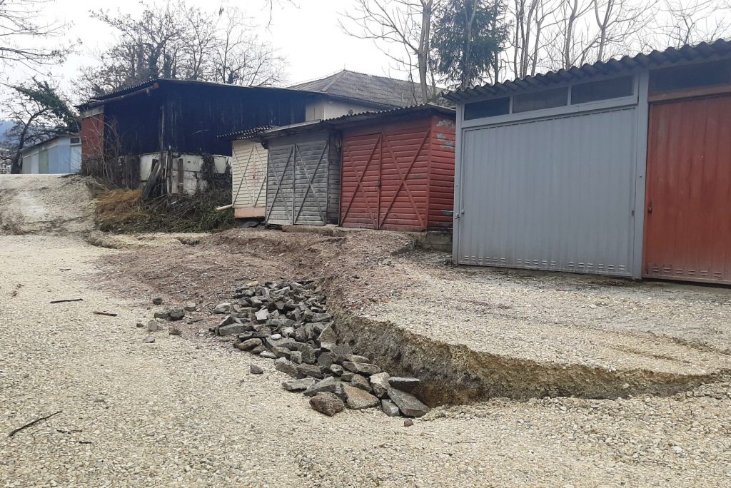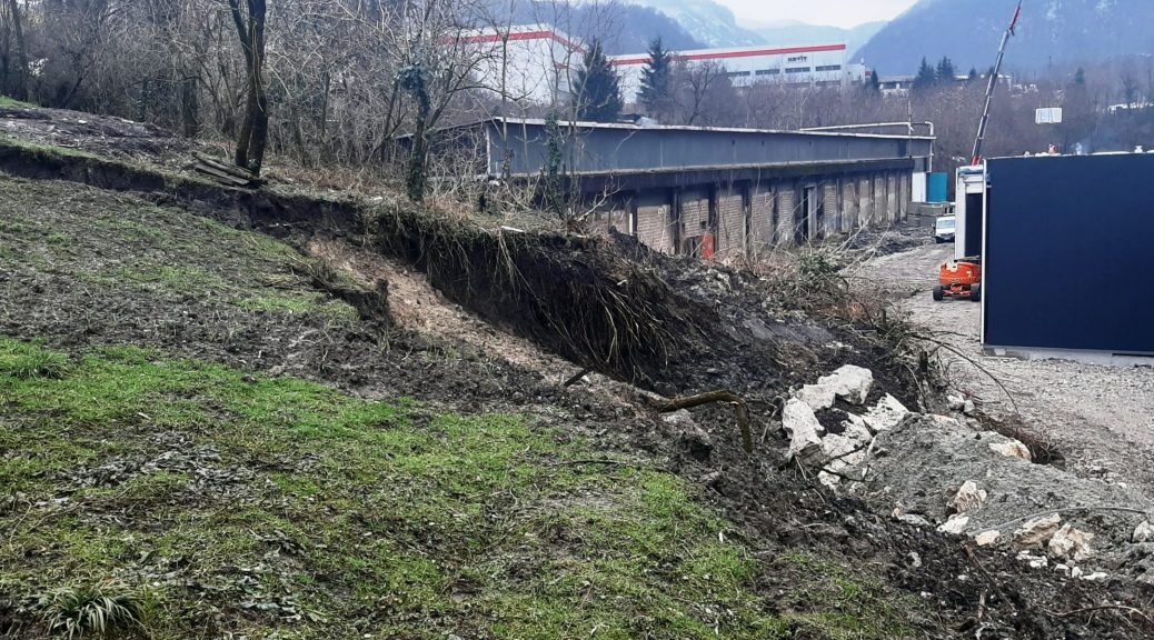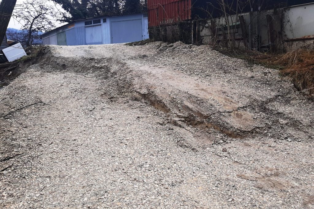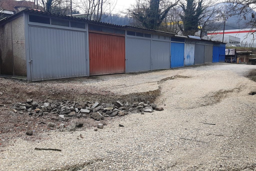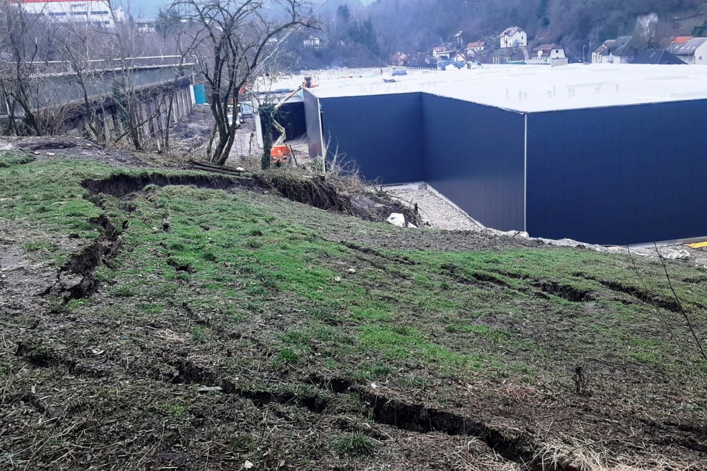 Krajane Trbovelj, ki imajo garaže in vrtičkarske objekte na brežini neposredno nad zemljiščem nekdanje Strojne tovarne Trbovlje, na katerem poteka gradnja nakupovalnega središča, je presenetilo in prestrašilo drsenje ter pogrezanje zemlje. Pogreznil se je del makadamske vozne poti do garaž in gred, odneslo je del brežine, zemljišče pa je močno razpokano, razkosano in pogreznjeno.
