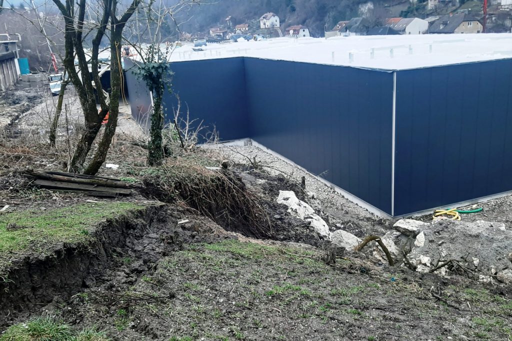 Zaradi nakupovalnega središča odtrgalo brežino?